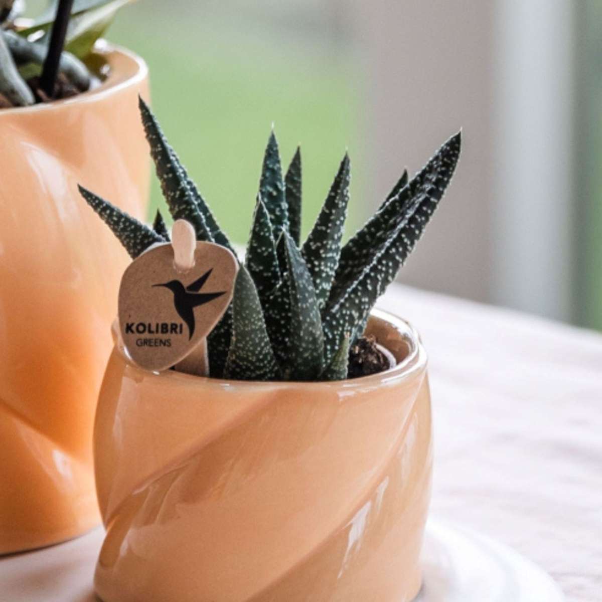De Phalaenopsis orchidee staat graag op een lichte plek, maar niet in fel zonlicht. Geef één keer per week water door de pot kort in lauwwarm water te dompelen en goed te laten uitlekken. Verwijder uitgebloeide bloemen en knip de tak pas terug als hij helemaal is verdroogd. De succulent heeft nog minder nodig: een scheutje water om de twee à drie weken is genoeg. Beide planten zijn eenvoudig te verzorgen en zorgen lang voor sfeer en plezier in huis.