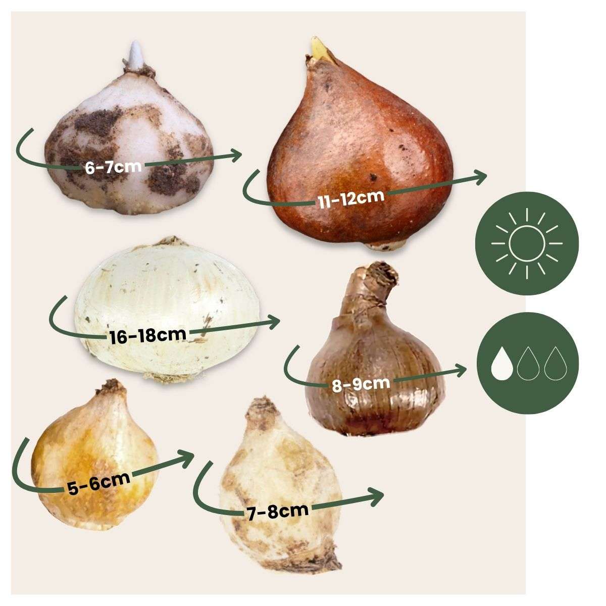 Dit pakket bevat een mix van bloembollen met verschillende omtrek bij levering.