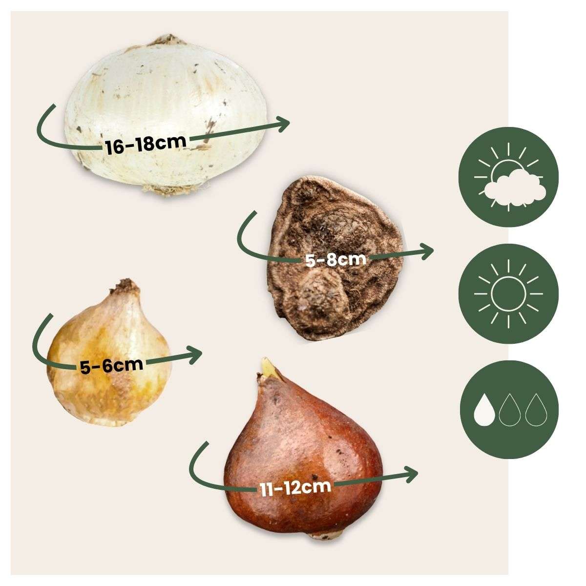 Het planten van zowel de Happy Butterfly Mix als de Happy Bee Mix is eenvoudig en vergt minimale inspanning. Kies een zonnige plek in uw tuin met goed doorlatende grond. Graaf een gat twee keer zo diep als de hoogte van de bloembol en plaats de bol met de punt naar boven in het gat. Bedek de bol met aarde en druk de grond lichtjes aan. Geef na het planten voldoende water zodat de bollen goed kunnen wortelen. Houd de grond tijdens het groeiseizoen vochtig, maar vermijd te veel water om rotting te voorkomen. Met regelmatig water geven en voldoende zonlicht groeien de bollen uit tot prachtige bloemen die vlinders en bijen aantrekken en leven in uw tuin brengen.