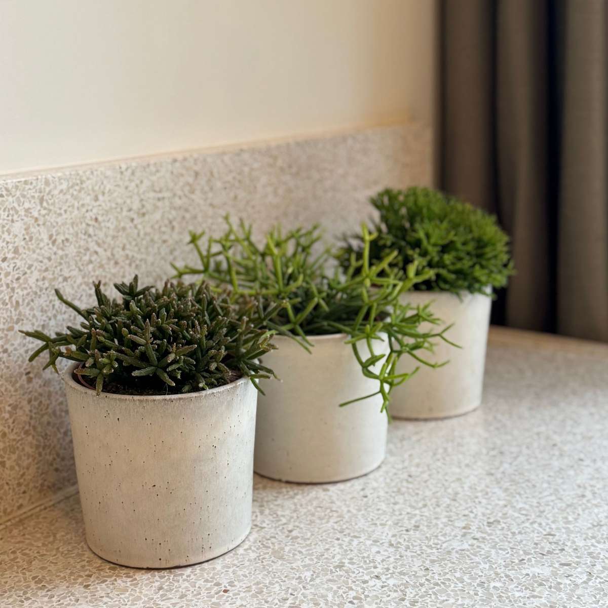 De veelzijdige Rhipsalis mix is een prachtige set luchtige, groene kamerplanten met een elegante, vaak hangende groeiwijze. Rhipsalis, ook wel jungle- of koraalcactus genoemd, komt oorspronkelijk uit de tropische bossen van Midden- en Zuid-Amerika, waar hij als epifyt op bomen groeit. Deze planten vallen op door hun speels vertakte, frisgroene stengels en geven direct een lichte, levendige uitstraling aan ieder interieur. Bij goede verzorging kunnen er tijdens de bloeiperiode kleine witte of zachtgele bloemetjes verschijnen, wat extra charme toevoegt. Dankzij hun compacte formaat en gracieuze groei zijn deze Rhipsalis ideaal voor een plank, vensterbank of een trendy hangpot. Samen vormen ze een opvallende maar subtiele groene blikvanger voor binnen.